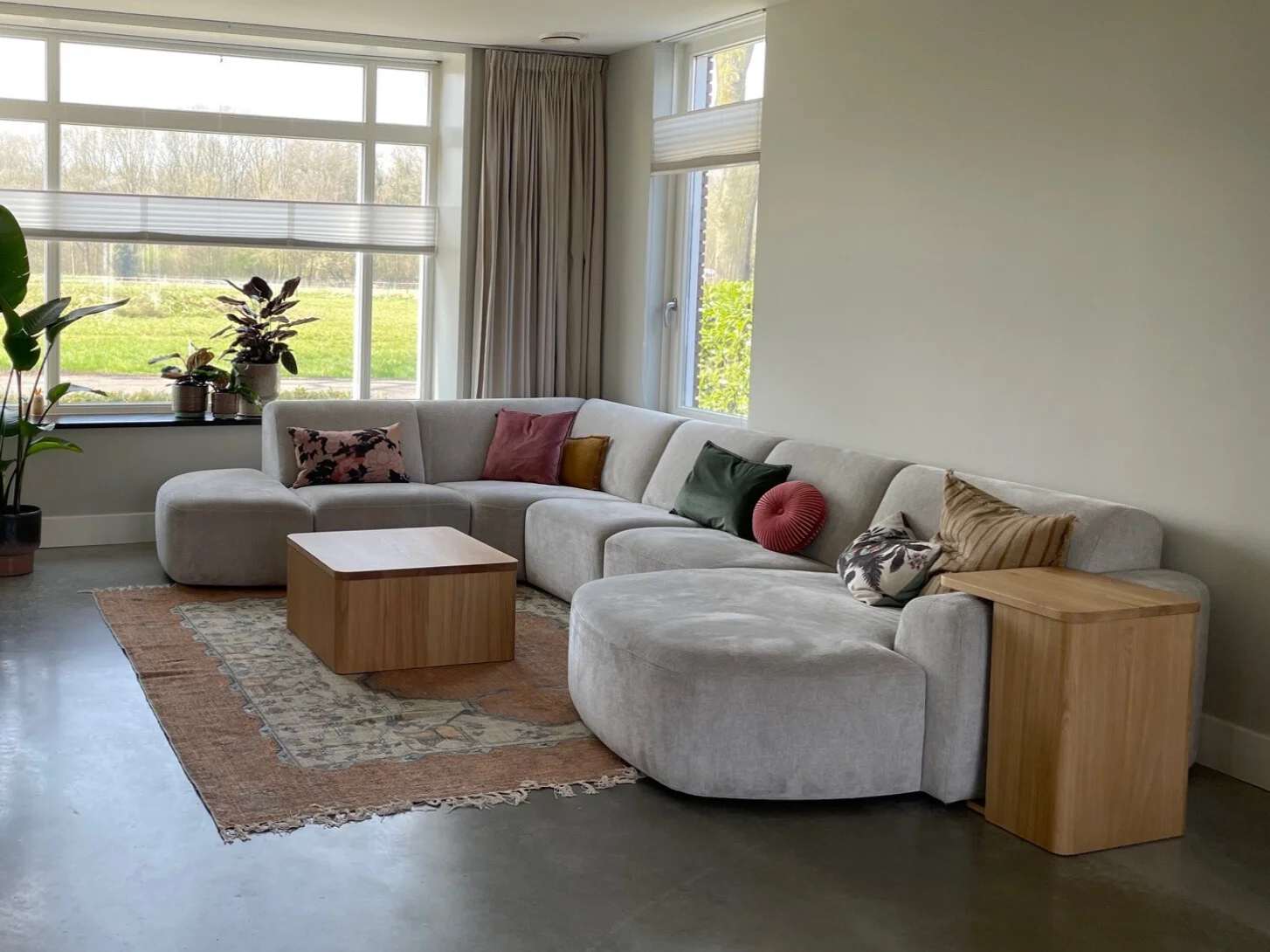 Eikenhouten salontafel en bijzettafel met afgeronde hoeken