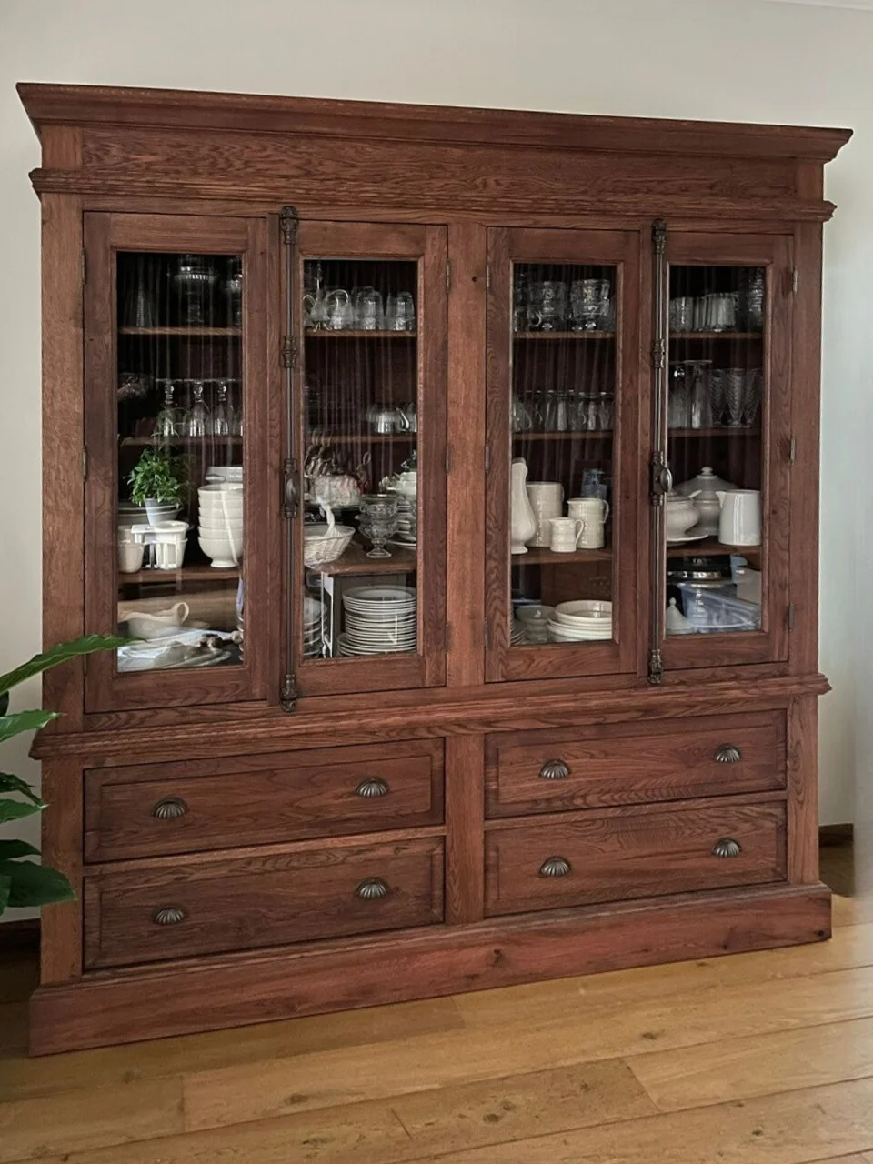Rustieke servieskast gemaakt van eiken balkfineer voorzien van donkere laklaag op oliebasis
