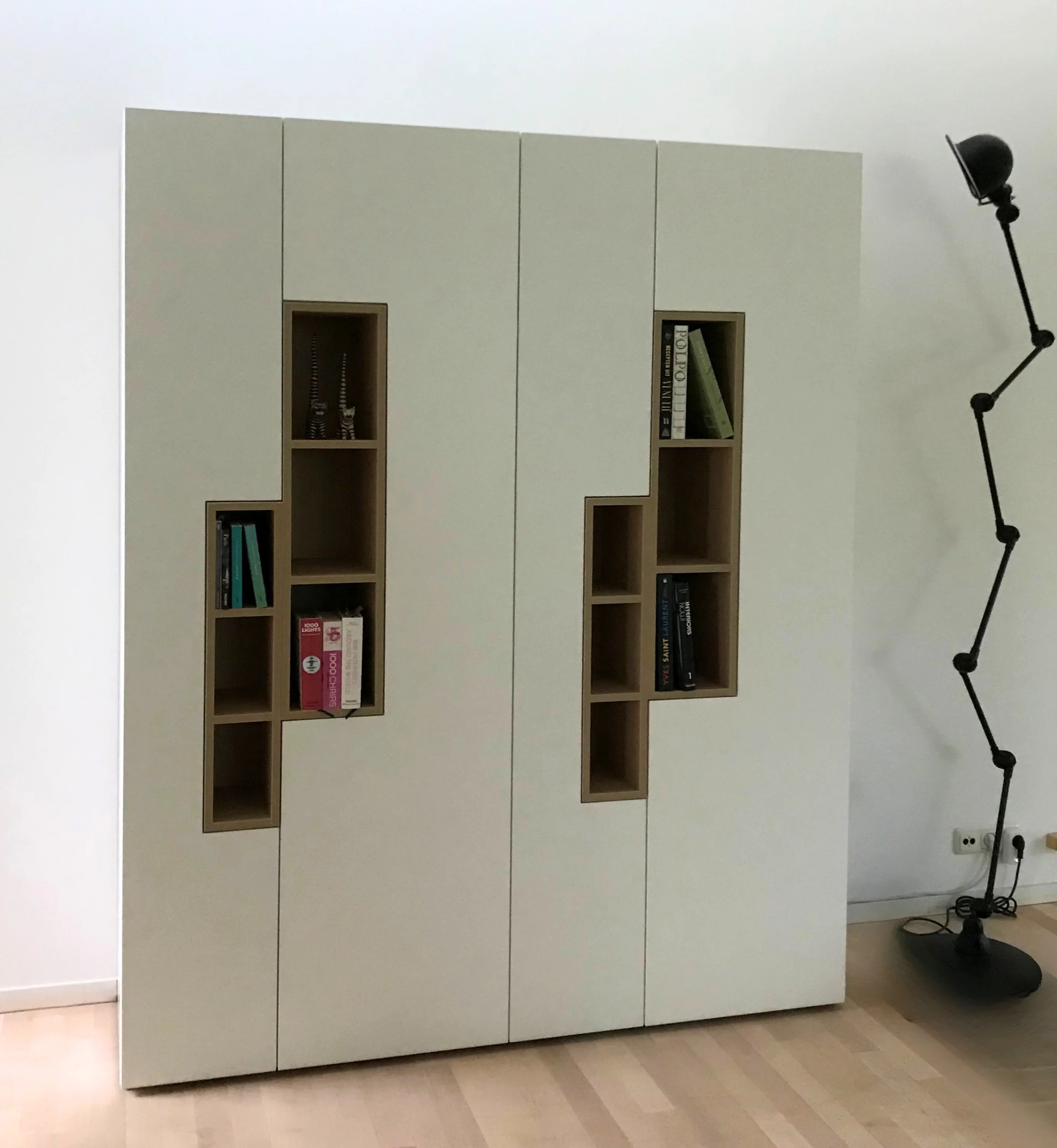 Designkast volgens Italiaans ontwerp met strak lakwerk en greeploze deuren