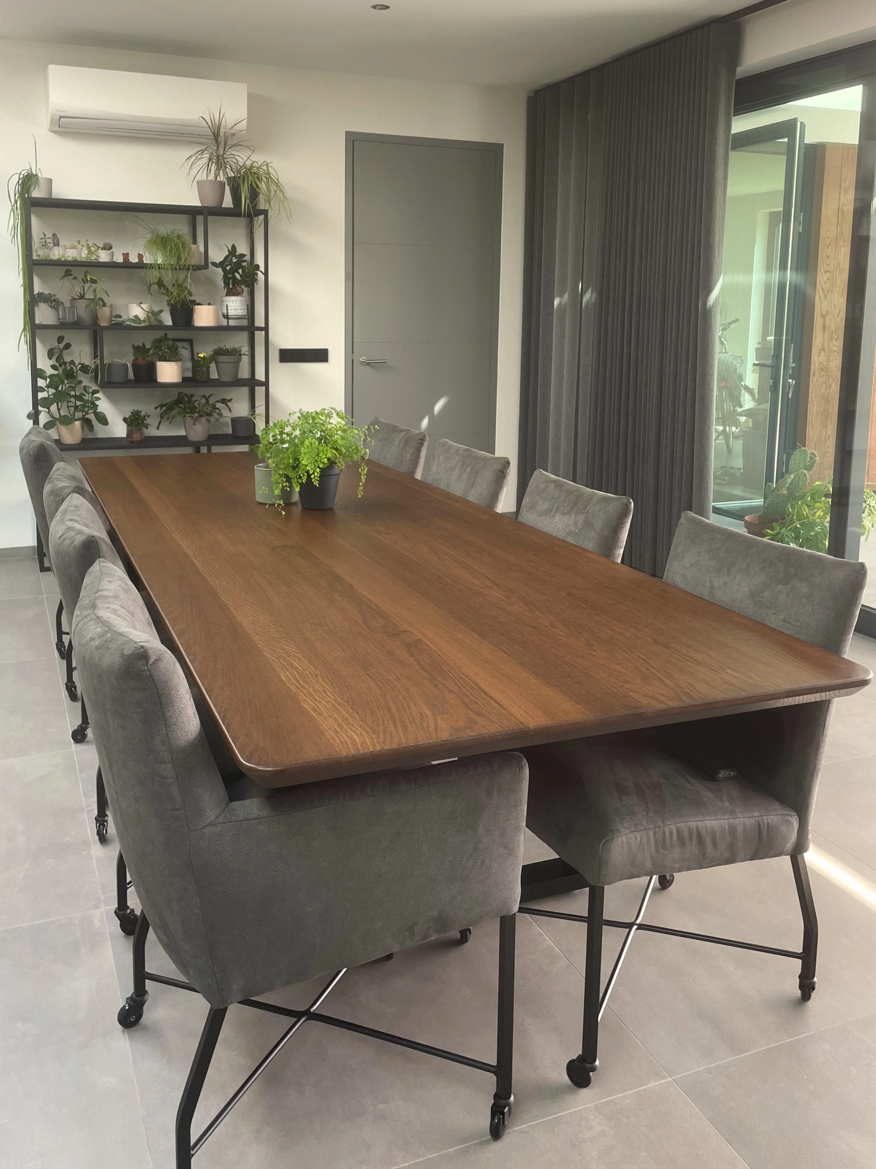 Massief eikenhouten eetkamer-tafel met afgeschuinde facetrand
